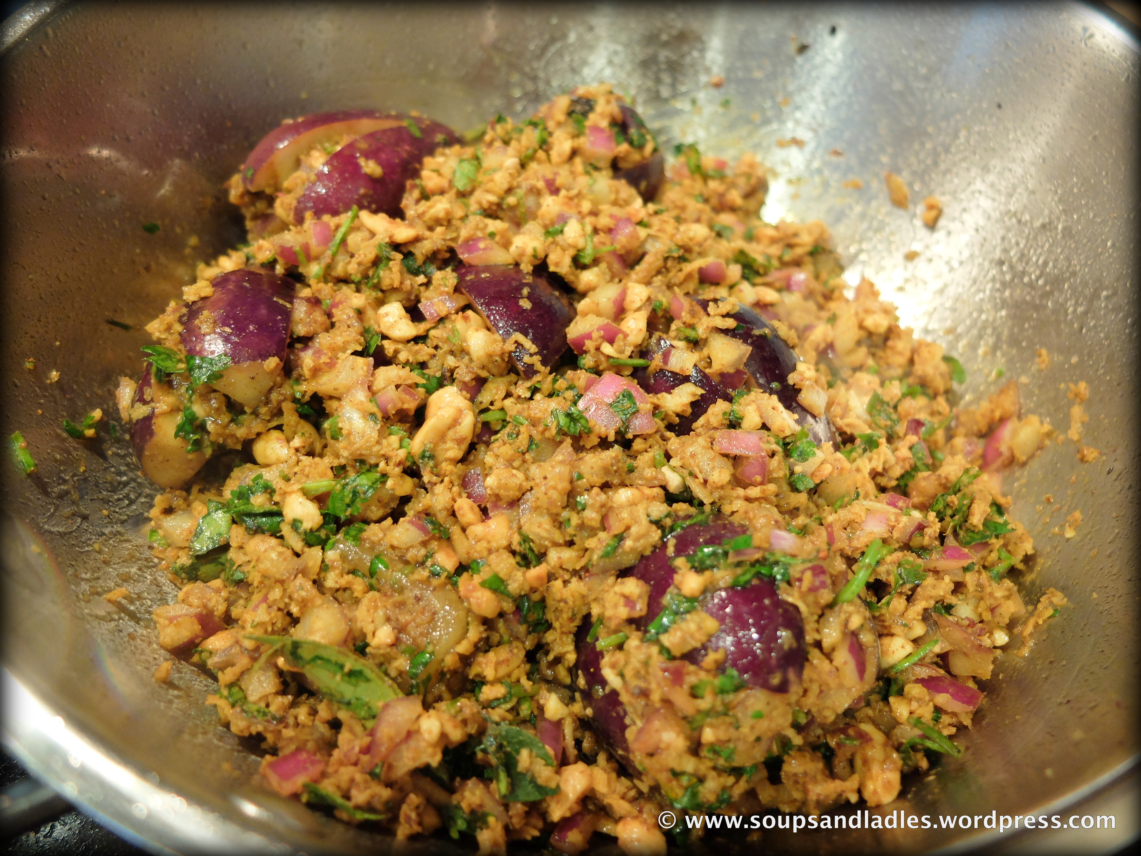 Add the remaining stuffing on the eggplants, add some water if you want a little gravy. Cover and cook till the eggplants cook. If you have nice and tender eggplants it takes hardly 5-10 minutes to cook them.